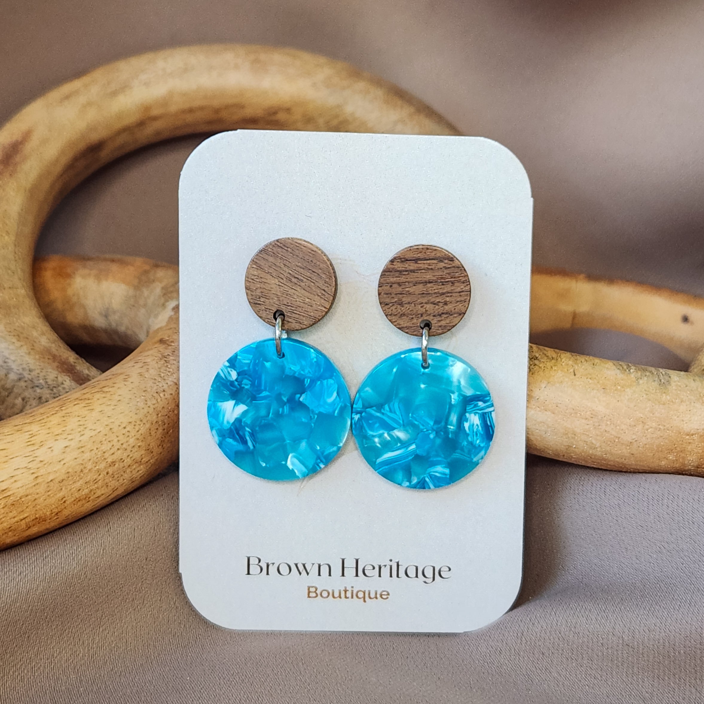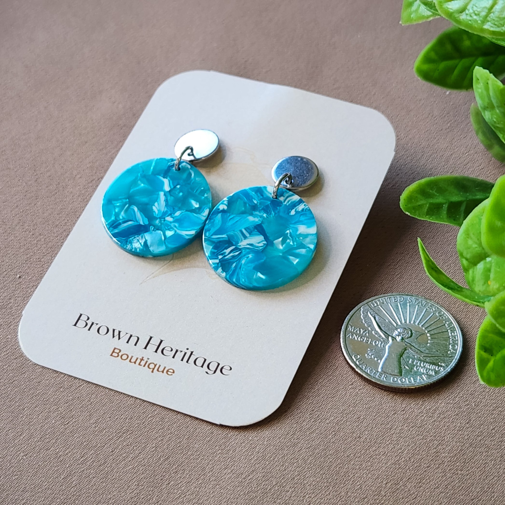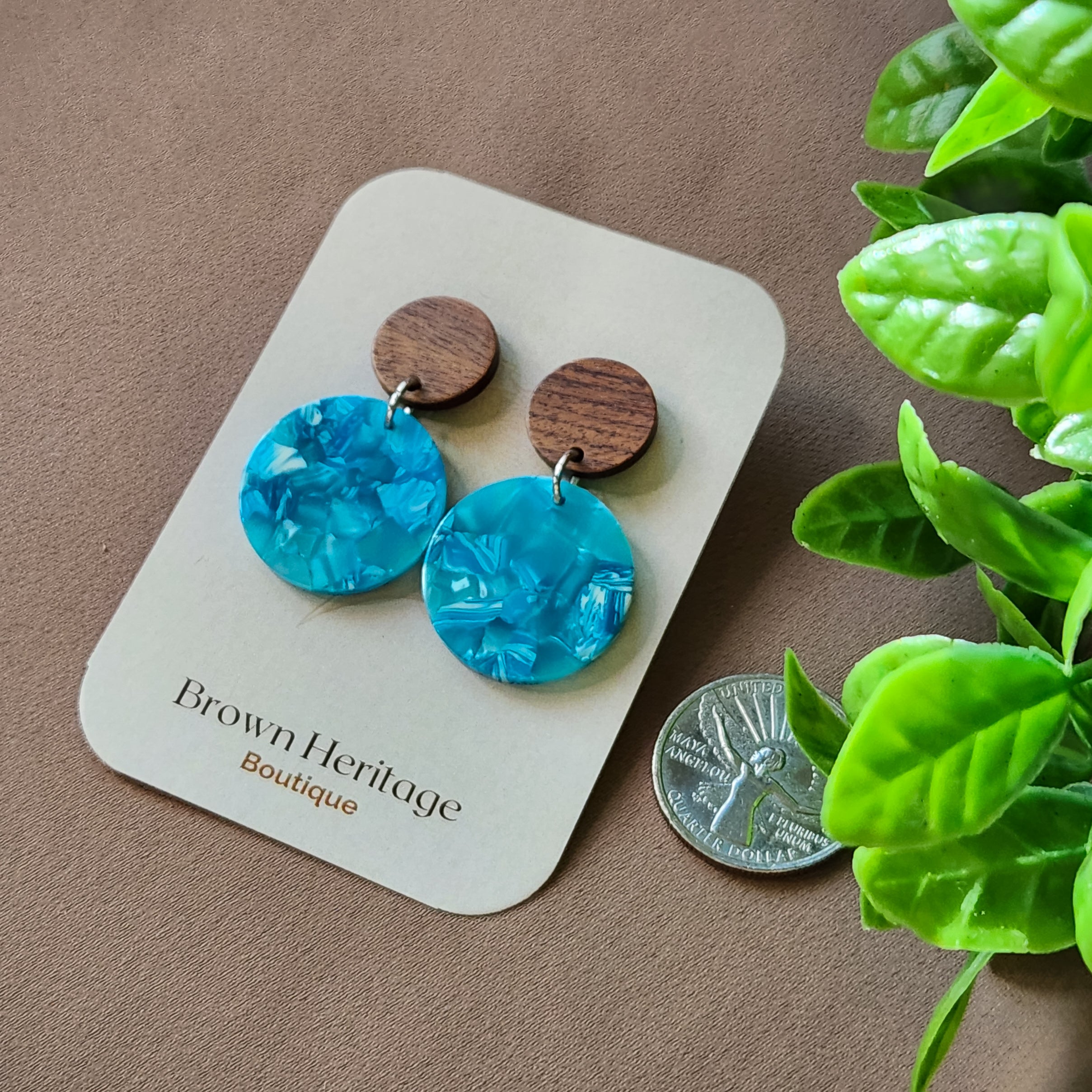 Be bold and bright with our Blue Frost Dangles! These round resin earrings feature a playful blue design and come with three stud post options: wooden, silver, or gold. Dress up any outfit with these quirky dangles.