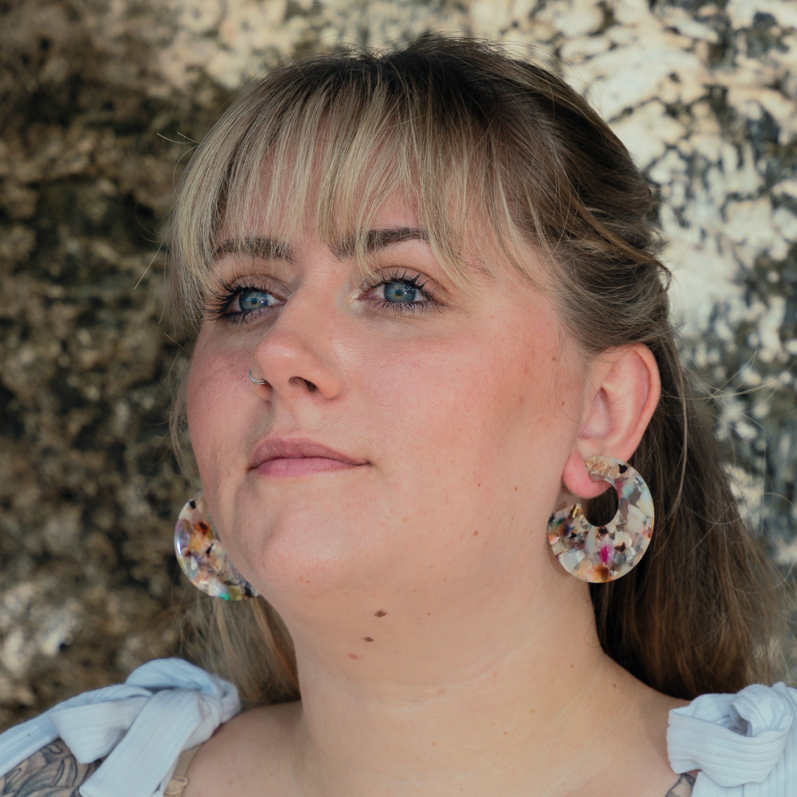 Introducing our Wide Hoop Sassy Girl Dangles - a stunning representation of love, beauty, and sass. These earrings feature a wide hoop shape with a vibrant color palette of pink, white, cream, purple, green, and blue, all crafted with high-quality resin. Get ready to receive compliments!