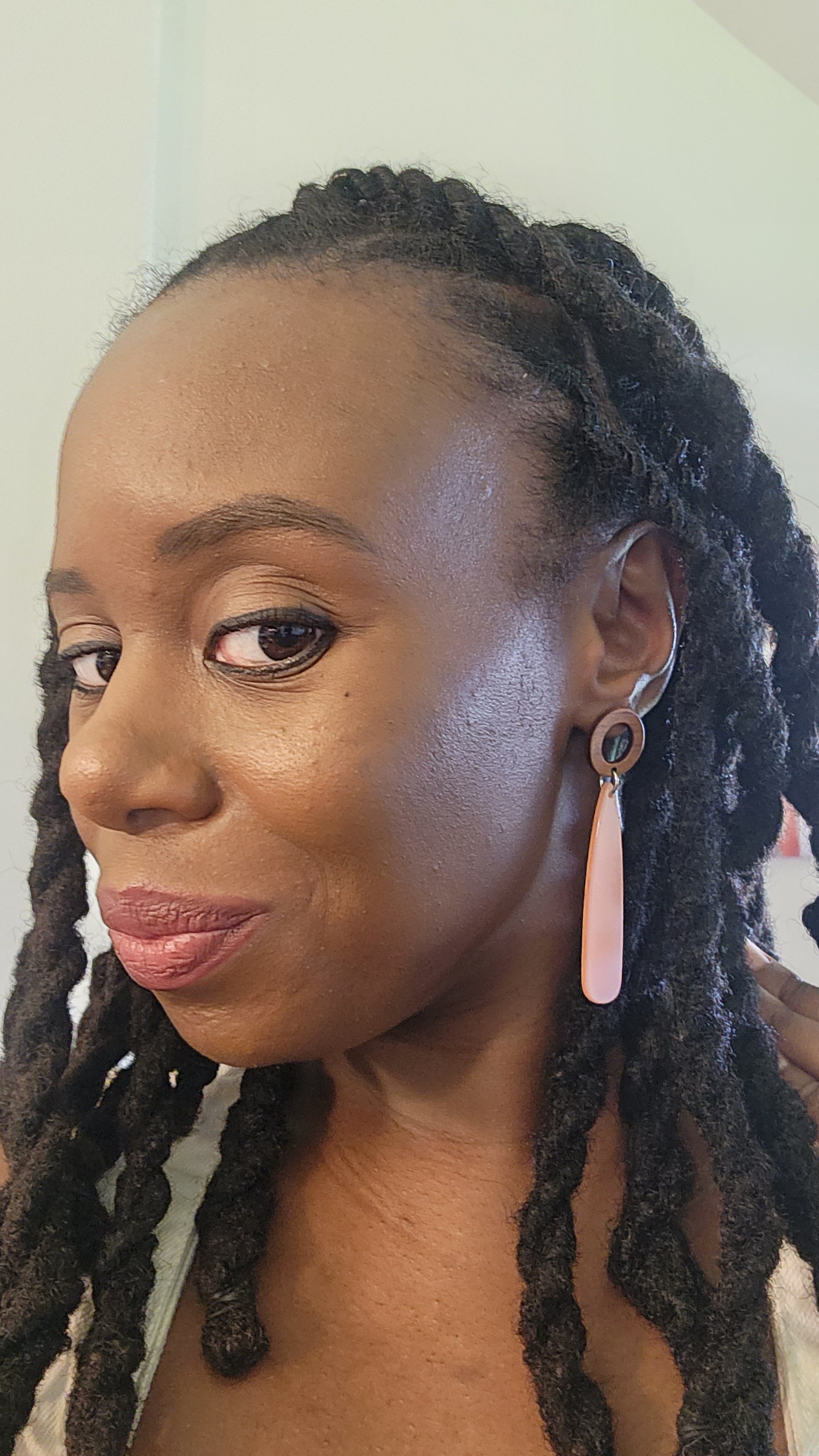 Introducing Emily Dangles – the perfect accessory for any quirky fashionista. These long pink resin tear drop earrings are sure to make a statement with their unique circle wooden top post. Stand out and add a playful touch to any outfit with Emily Dangles.