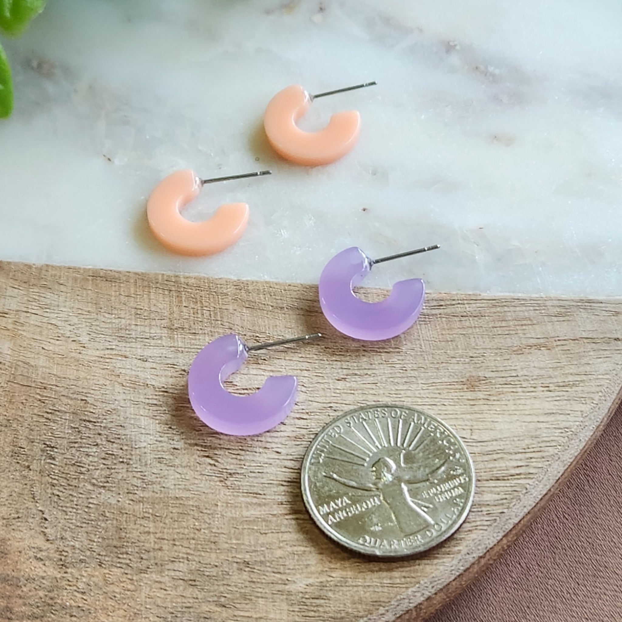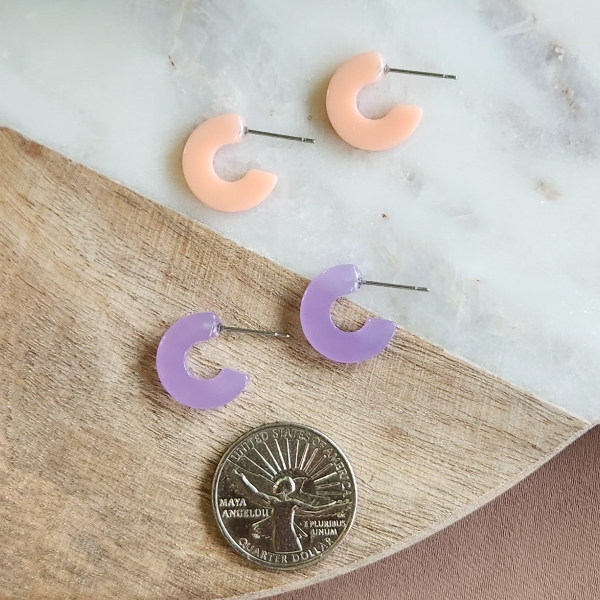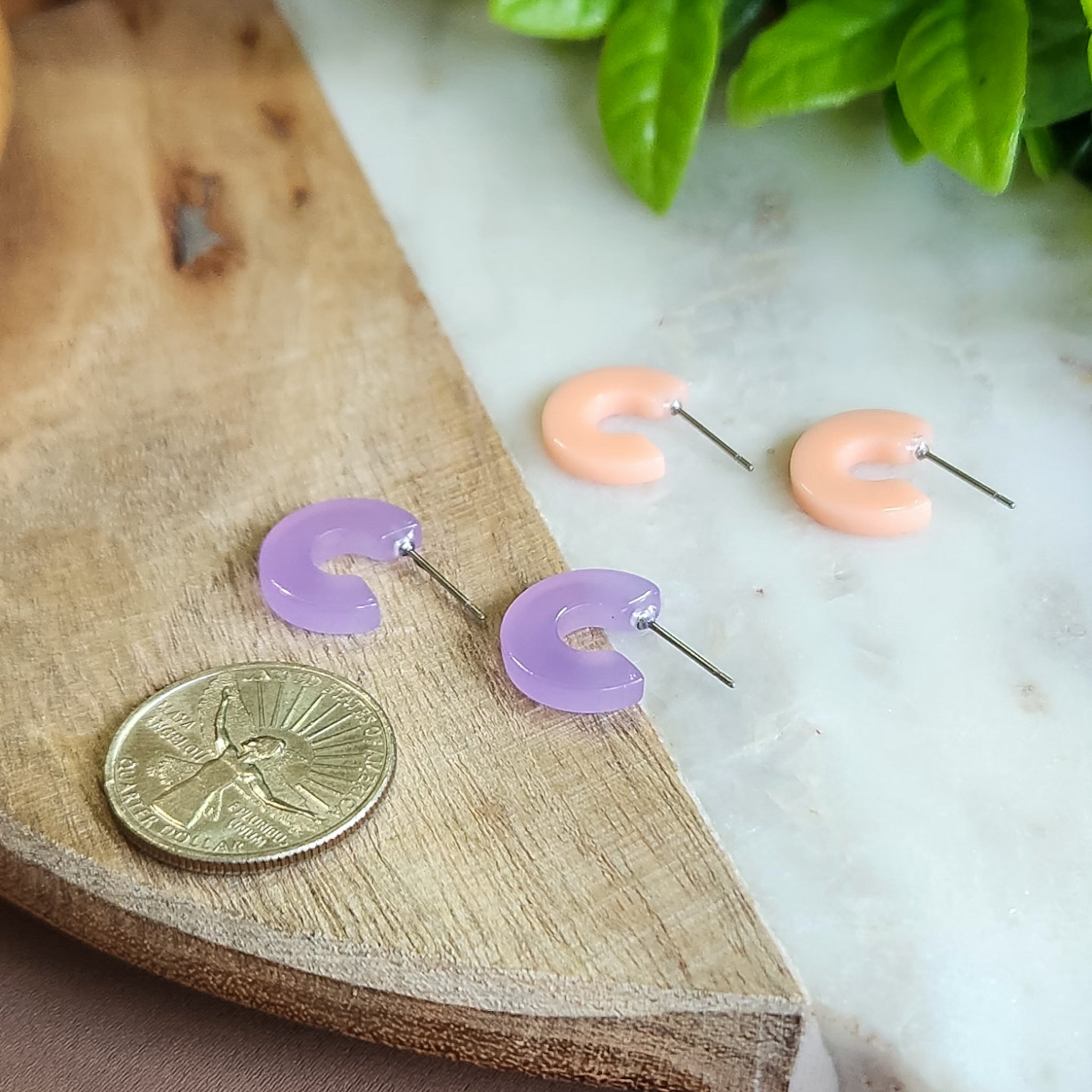Hug Me Huggies hug your ears in soft coral pink or lavender comfort! They're lightweight and perfect for everyday wear, making sure your style game can never be too weak!