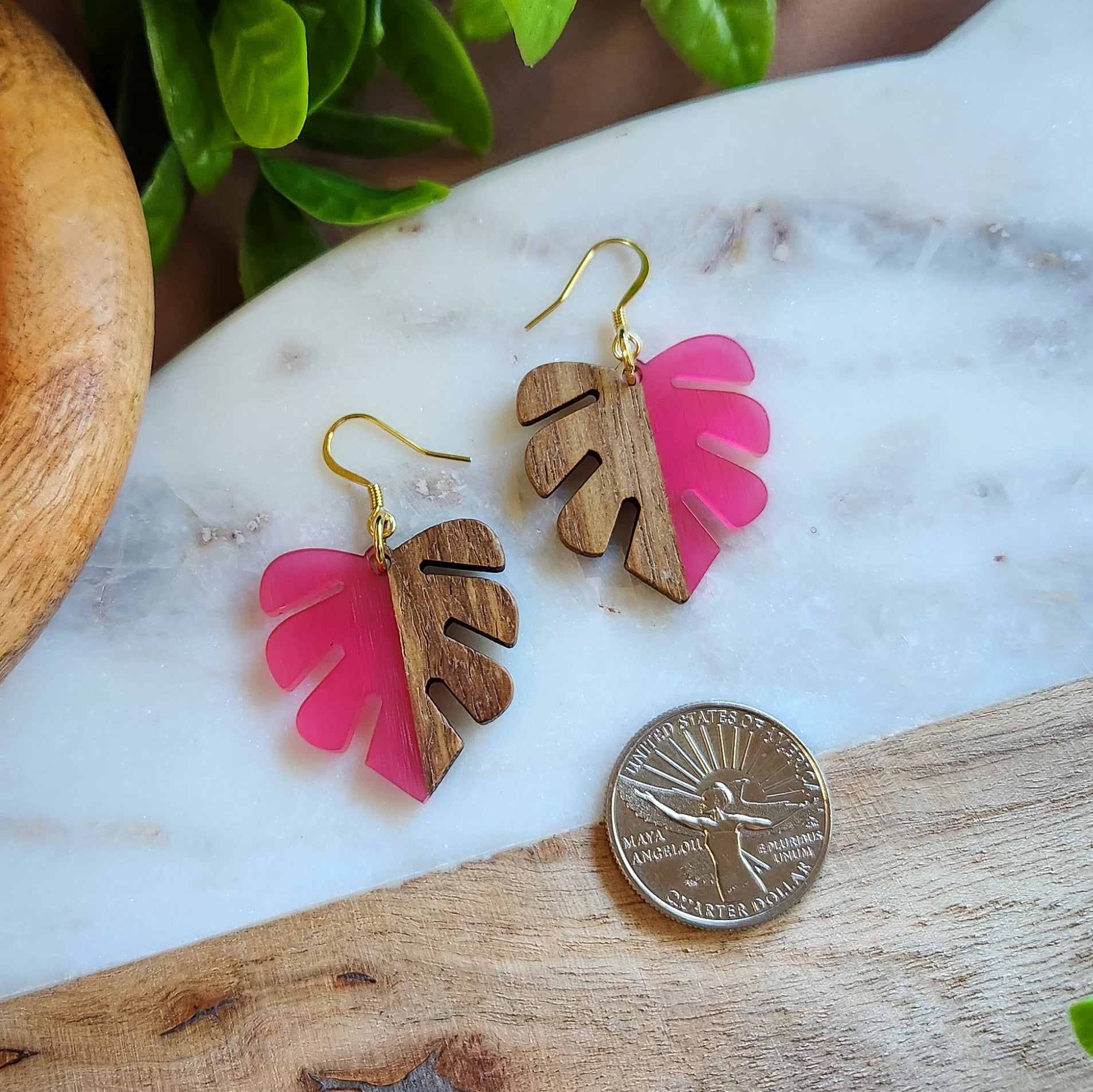 Strut your stuff with the monstera look, a flirty fusion of wood and resin with your choice of golden and silver stainless steel hooks. Get your glow up with a pop of hot pink - a must-have for any season!