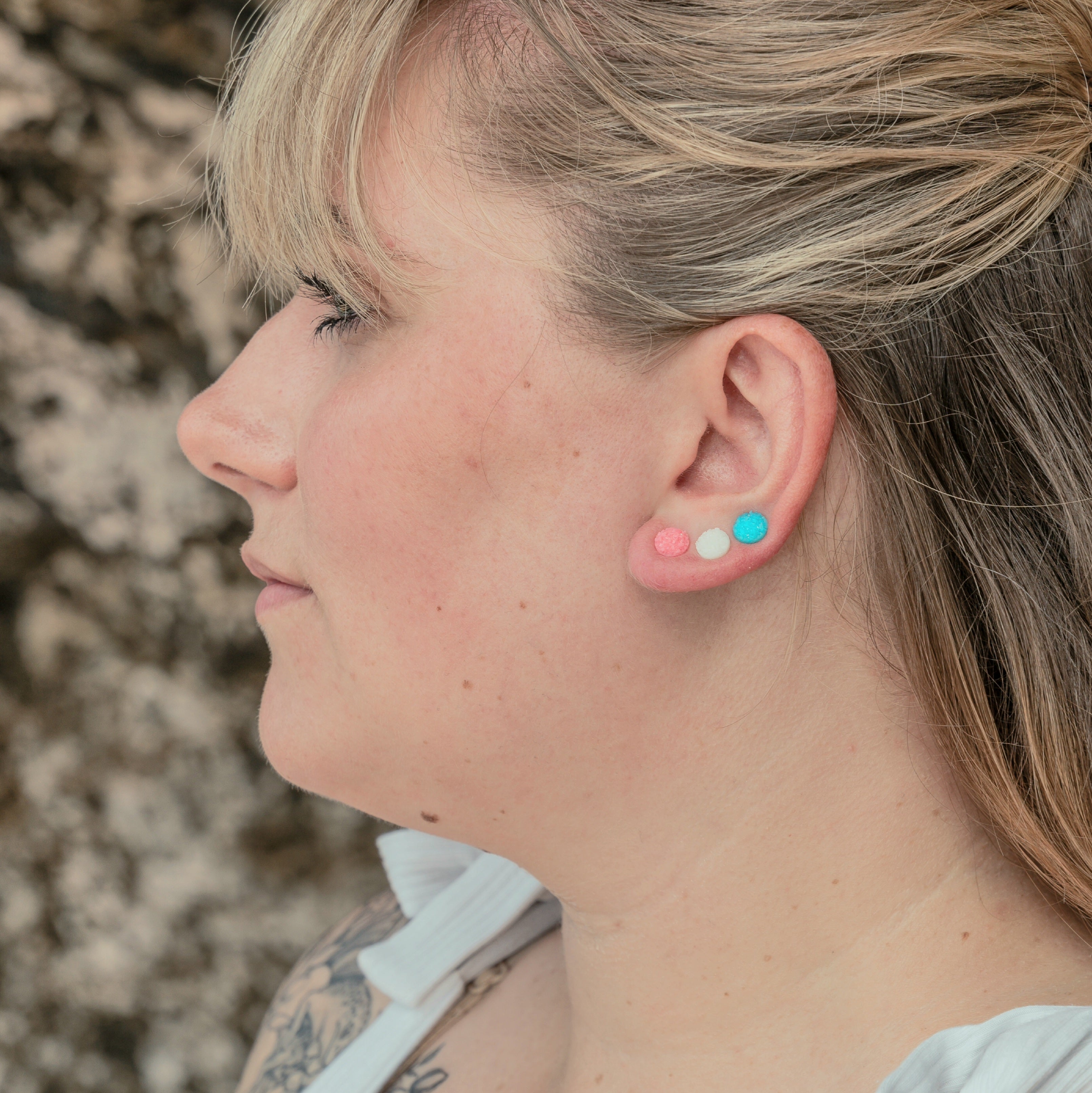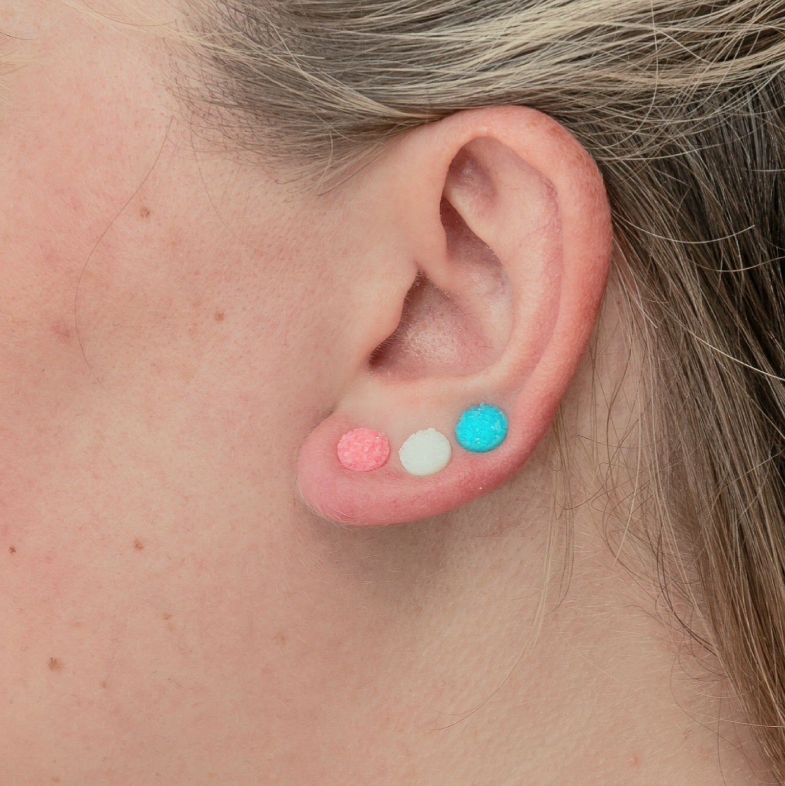 Introducing the Oh Baby Trio Matte, featuring three mini druzy studs in pink, white, and aqua. Get ready to sparkle with our first ever matte resin trio. Perfect for adding a touch of whimsy to any outfit!